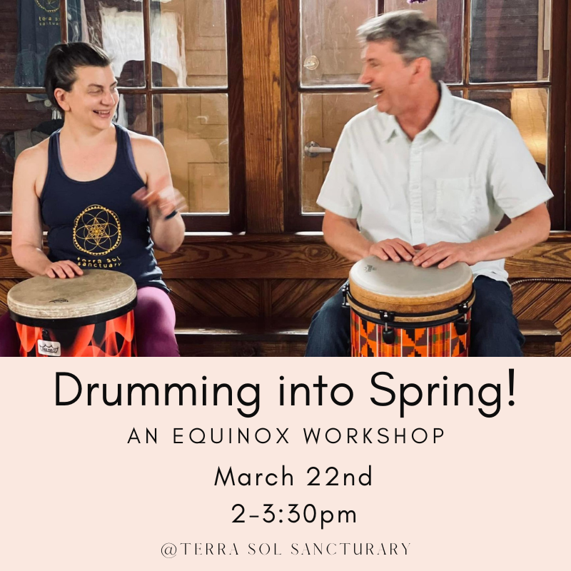 Join musician Perry Smith as he guides you through a joyous, rhythmic adventure to welcome the Spring Equinox. We’ll explore rhythm styles from West Africa to the Middle East as a means to enhance our listening and communicating skills, find deeper connection with each other and ourselves, and open to a greater sense of well being. All levels welcome. Drums are provided, but feel free to bring your own!